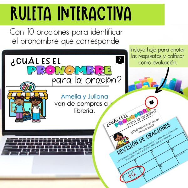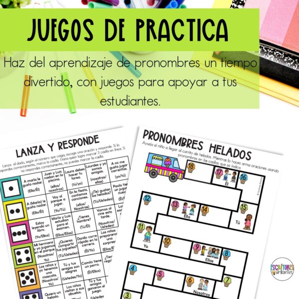 Las actividades ayudan a que los estudiantes memoricen los pronombres y, a la vez, practiquen su uso correcto creando oraciones.