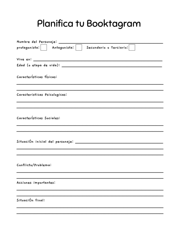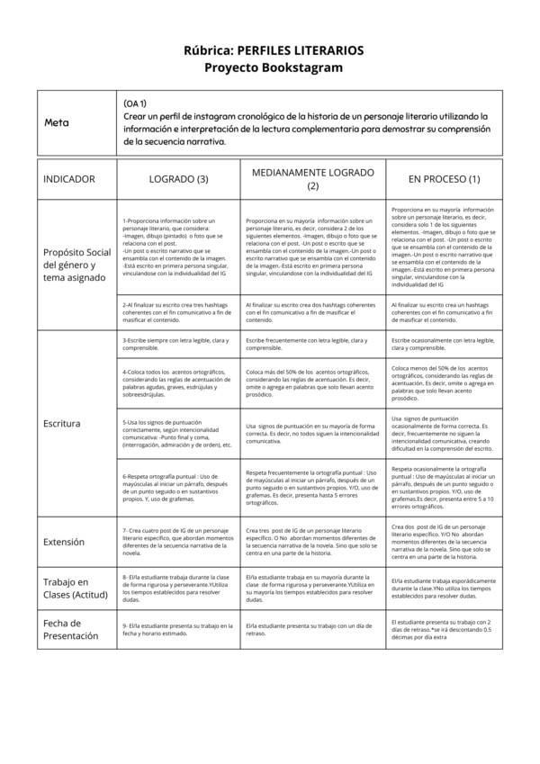 Este recurso tiene como objetivo : Crear un perfil de instagram cronológico de la historia de un personaje literario utilizando la información e interpretación de la lectura complementaria para demostrar su comprensión de la secuencia narrativa. Para alcanzarlo, el estudiantado debe tomar decisiones frente al gran problema retórico sobre qué y como escribir, así que este recurso involucra diversas estrategias de lectoescritura tales como: