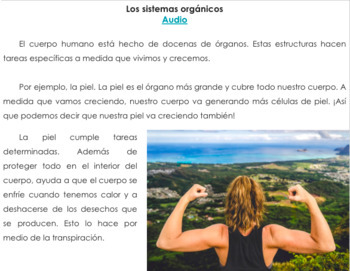 Incluye un texto un PDF con la explicación de los sistemas y un video con lectura en voz alta de cada uno de los textos.