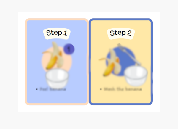 ¿Aprender inglés cocinando saludable? Entretenidas flashcards para cocinar Cocadas avena-plátano con niños y niñas de todas las edades. Incluye imágenes ilustrativas del paso a paso, con instrucciones sencillas en inglés desde el paso 1 al 6.