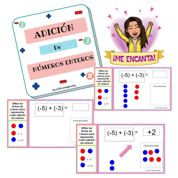 Recurso interactivo en presentación de google para trabajar de manera pictórica la adición de números enteros en 7º año básico. Las fichas de color rojo y azul se pueden mover cuando accedes a la presentación de google y puedes crear muchas copias para cada estudiante. Si trabajas desde el pdf puedes imprimir y termolaminar para usar con fichas en concreto de los colores propuestos.