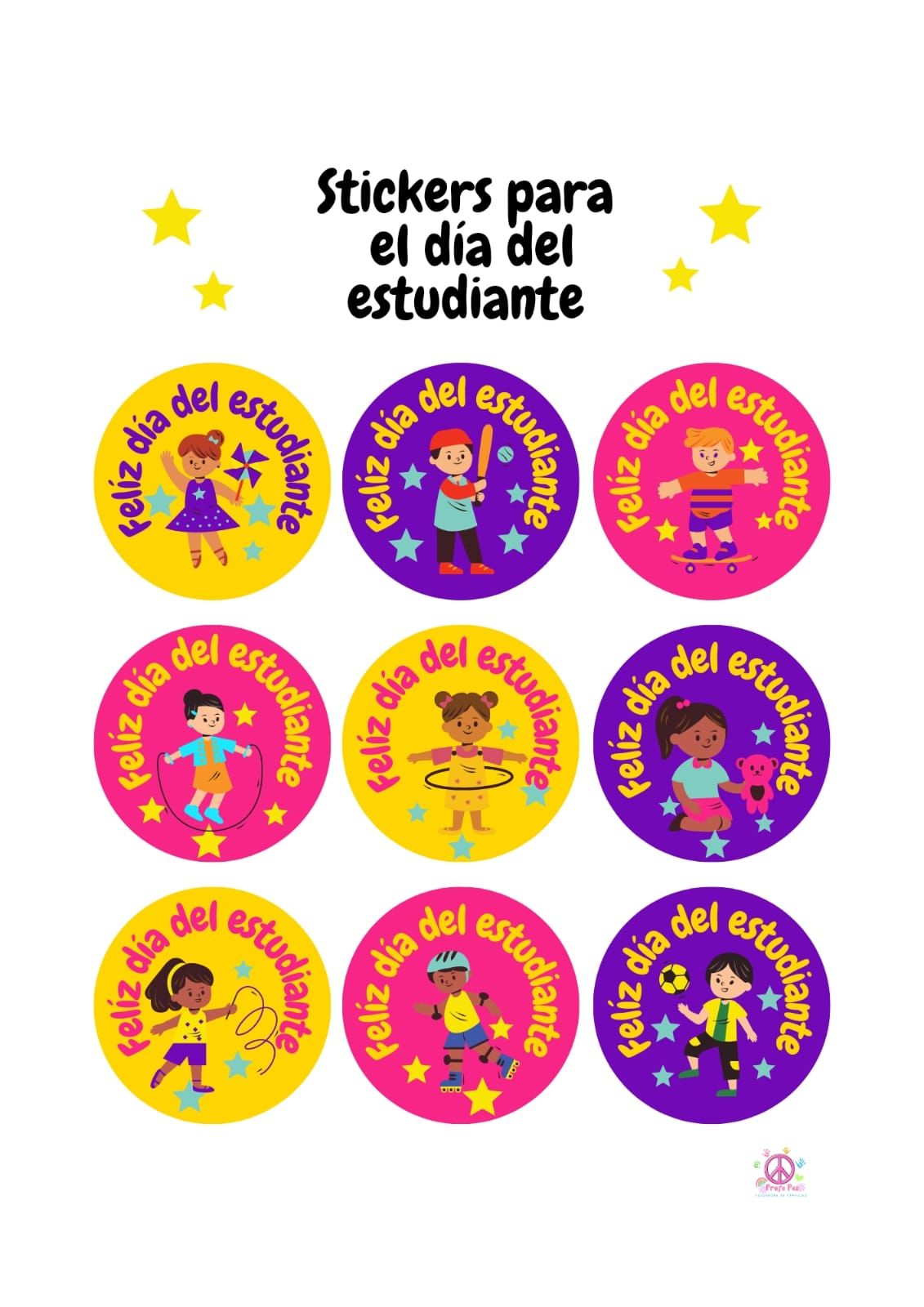 Diferentes recursos que pueden ser utilizados para el día del estudiante, stickers, dulceros, tarjetas entre otros.