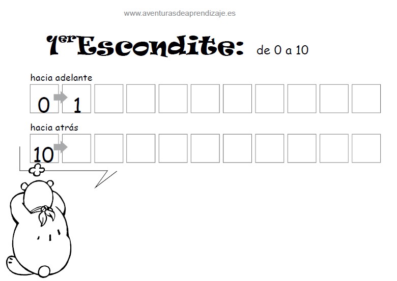 El Escondite: En las actividades de escondite, simplemente hay que contar y escribir primero de menor a mayor y luego de mayor a menor.