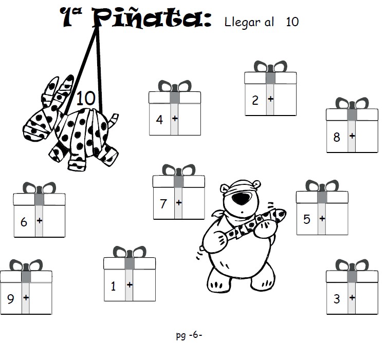Piñata: En las actividades de piñata, simplemente hay que anotar qué número falta para llegar a la próxima decena.