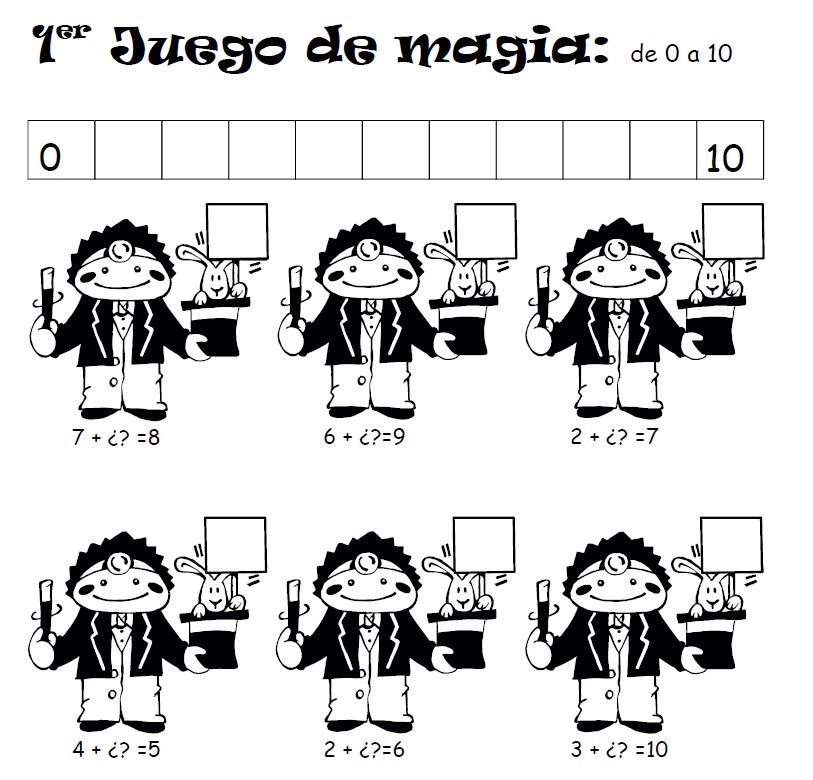 El Juego de Magia: En las actividades de juego de magia hay que adivinar qué número falta en la operación y escribirla en la pancarta que muestra el conejo.