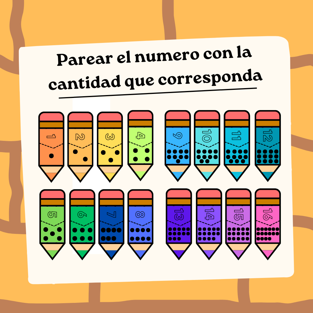 Emparejamiento de números: Con este rompecabezas, los niños pueden practicar emparejando números con la cantidad que representan, fortaleciendo sus habilidades matemáticas y numéricas.