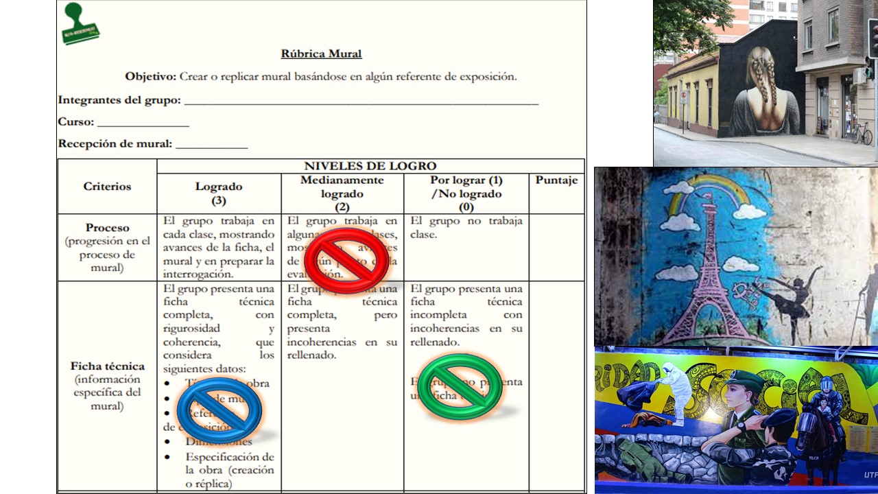 - Rúbrica analítica para evaluar sumativamente un mural de manera grupal.