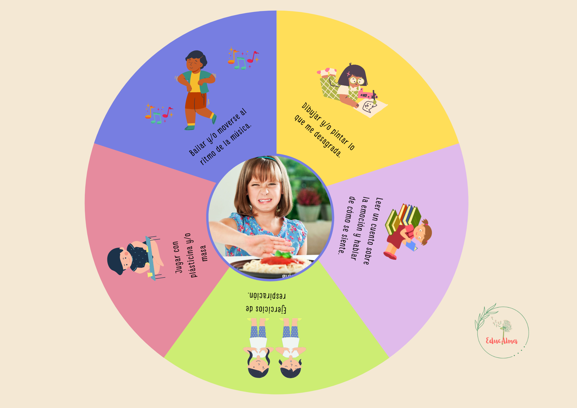 - 1 ruleta con actividades para gestionar la emoción del desagrado.