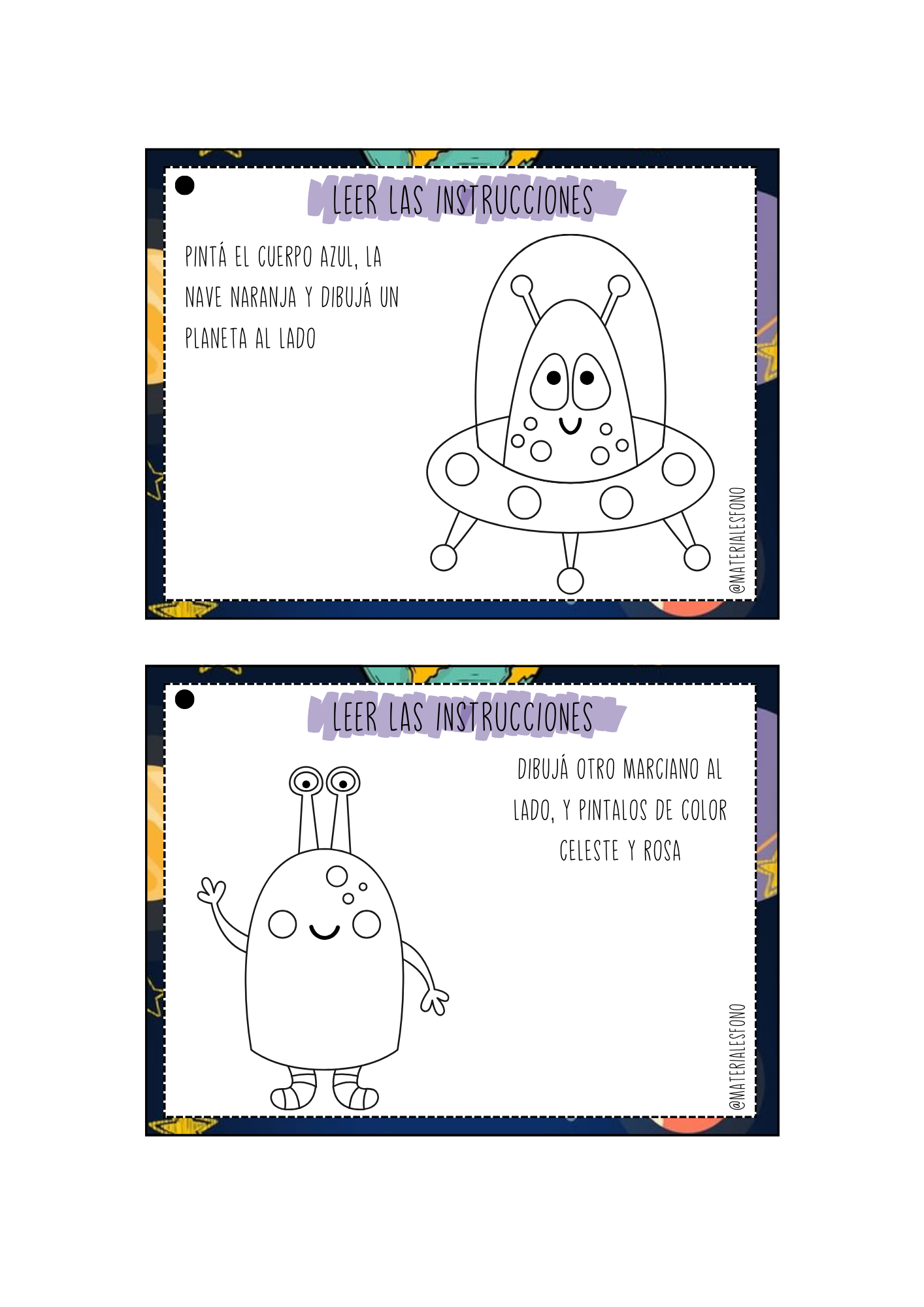 - 10 páginas en blanco y negro para colorear siguiendo la consigna.