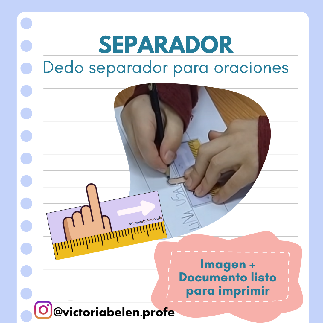 Dedo separador que ayuda a estudiantes a incroporar los espacios entre palabras al escribir oraciones en la escritura inicial. Ideal para primero básico.