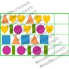 Tarjetas de seriación / patrones de figuras geométricas. 5 tarjeas con 4 seriaciones cada una.