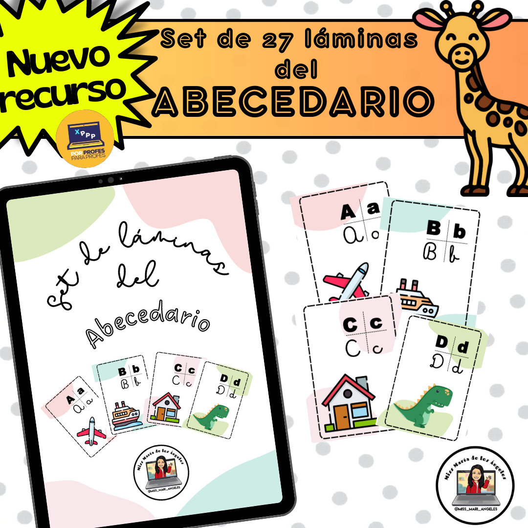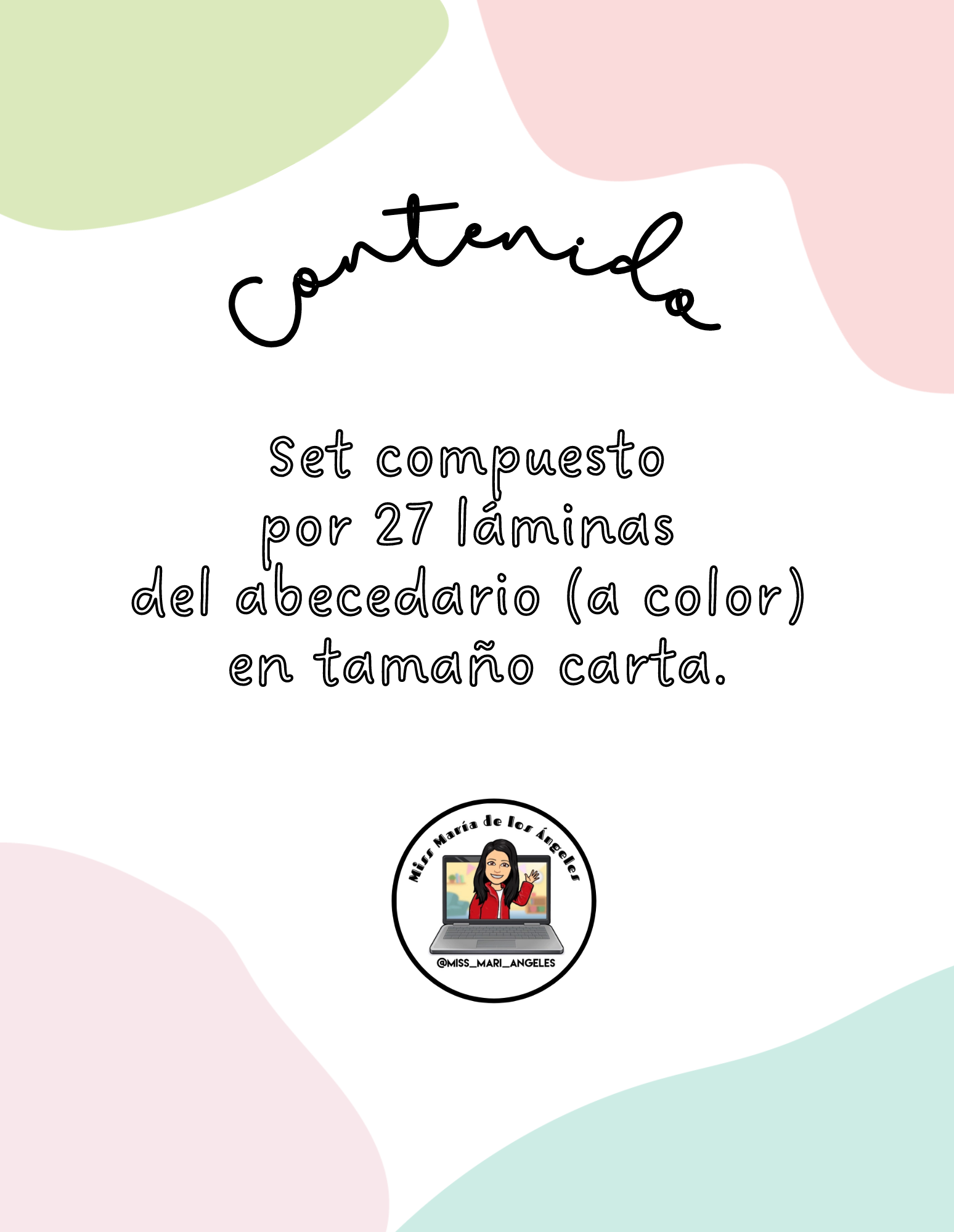 👍 En este set del abecedario, encontrarás 27 láminas a color en tamaño “carta”.