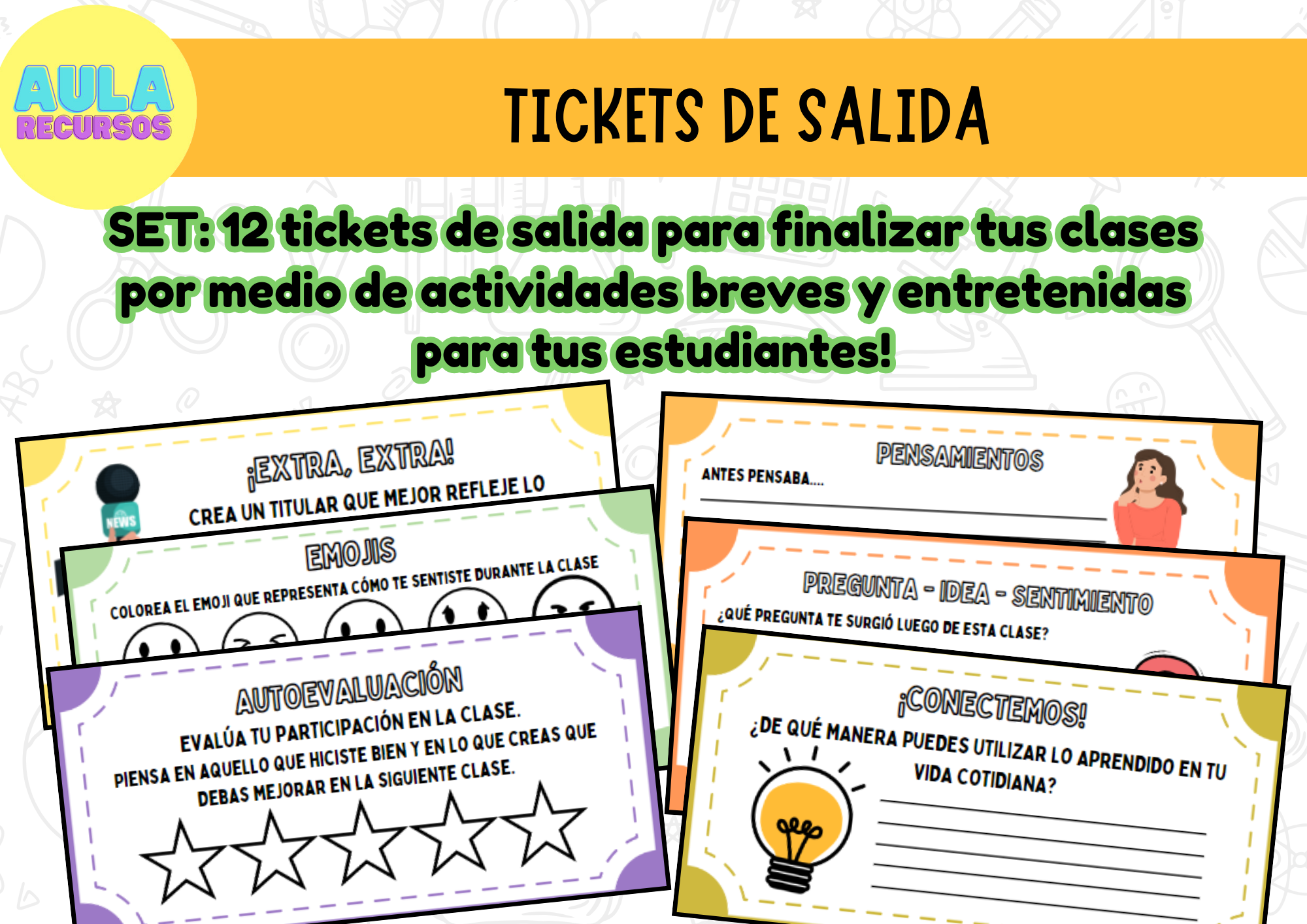 La evaluación formativa es muy importante para que puedas tomar decisiones pedagógicas a tiempo según el aprendizaje de tus estudiantes, te dejo este set de 12 tickets de salida para que puedas finalizar tus clases monitoreando de manera breve, rápida y eficaz el aprendizaje adquirido de tus estudiantes y el cumplimiento del objetivo de clase.