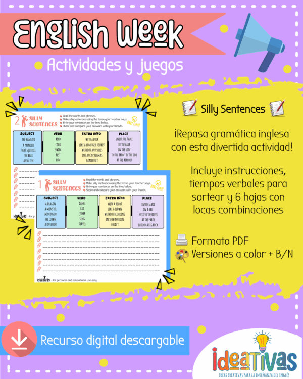 ¡Perfecto para practicar estructura, tiempos verbales y desarrollar la creatividad lingüística!