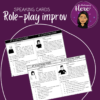 Este set de cuatro tarjetas llamado SPEAKING CARDS: ROLE PLAY IMPROV (AT THE CLOTHING STORE EDITION) esta diseñado para ser usado como ejercicio de práctica oral para estudiantes principiantes (a1-a2) que les permite repasar las expresiones aprendidas al tiempo de