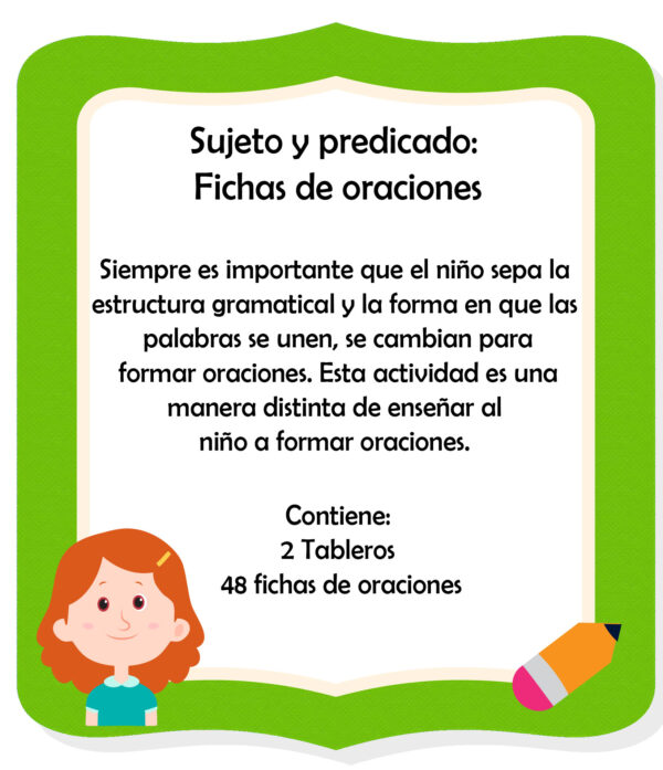 Esta actividad es una manera distinta de enseñar al niño a formar oraciones.