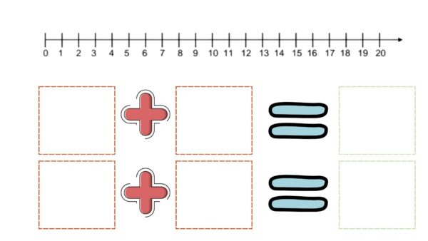 - Estructura: Una recta numérica que va del 0 al 20 (o cualquier rango que decidas), sobre la que el niño pueda mover las tarjetas o marcar los números con las chinitas o con velcro para realizar las sumas y restas.