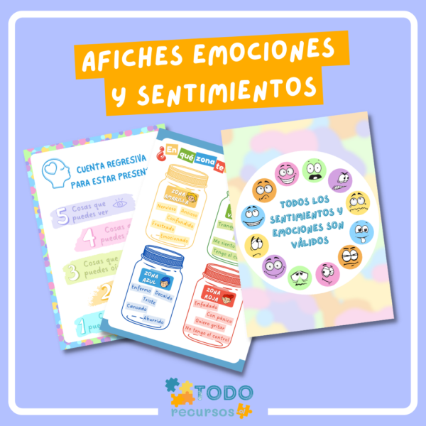 - Afiches emociones y sentimientos: Afiches para crear un espacio seguro que favorezca la regulación e inteligencia emocional. (7 estímulos)