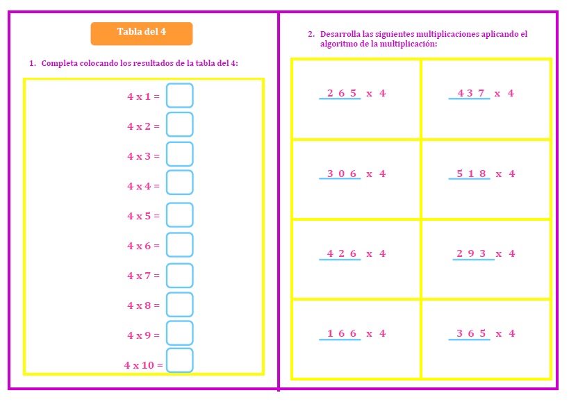 Guía de aprendizaje de Matemática desarrollada para niños y niñas que cursan 4° básico en base a los planes y programas y objetivo de aprendizaje del MINEDUC OA 5 “Demostrar que comprenden la multiplicación de números de tres dígitos por números de un dígito usando las tablas de multiplicación y aplicando el algoritmo de la multiplicación”