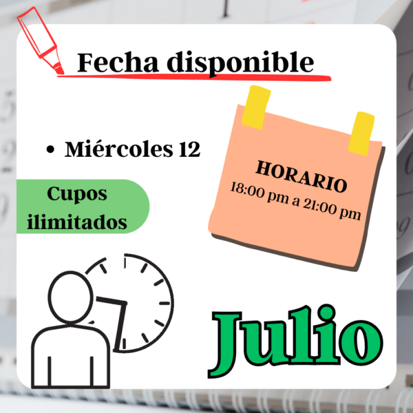 El taller se impartirá en su tercera versión, donde tendrás 3 horas para aprender y resolver todas tus dudas. Además, para asegurar la exclusividad, serán cupos limitados. En la publicidad está toda la información, pero igualmente te dejo mis contactos. Nos vemos!!!
