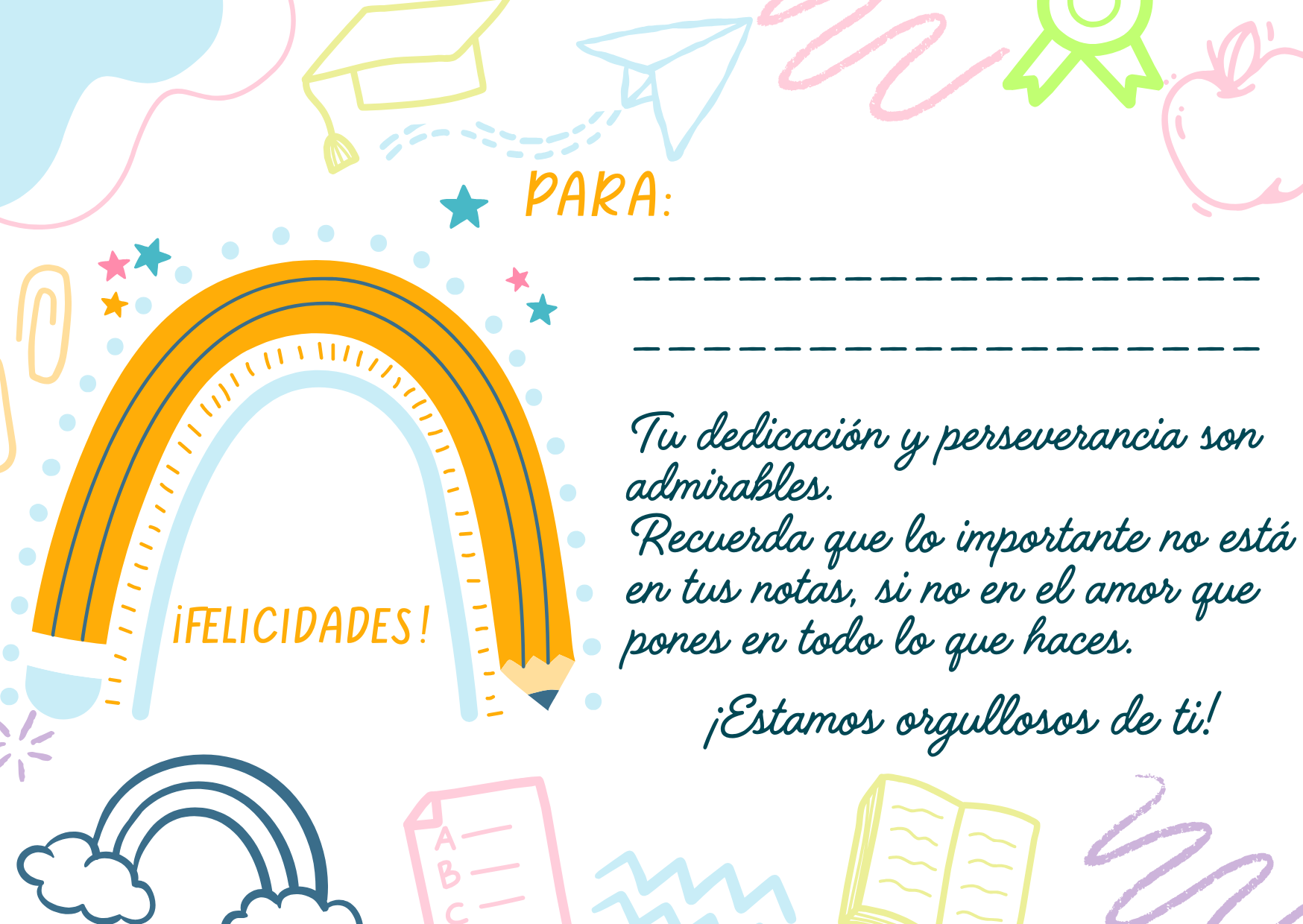 Tarjeta de felicitaciones para estudiantes.