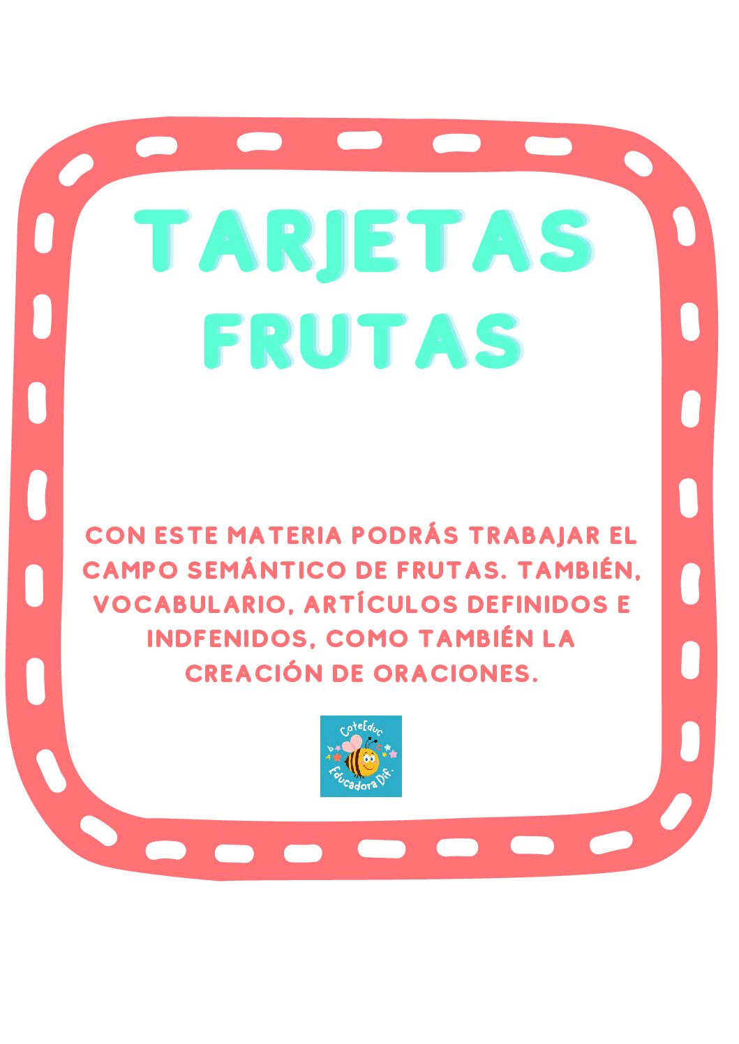 Con estas tarjetas podrás trabajar la categoría de frutas. También, podemos trabajar artículos definidos e indefinidos, entre otros.
