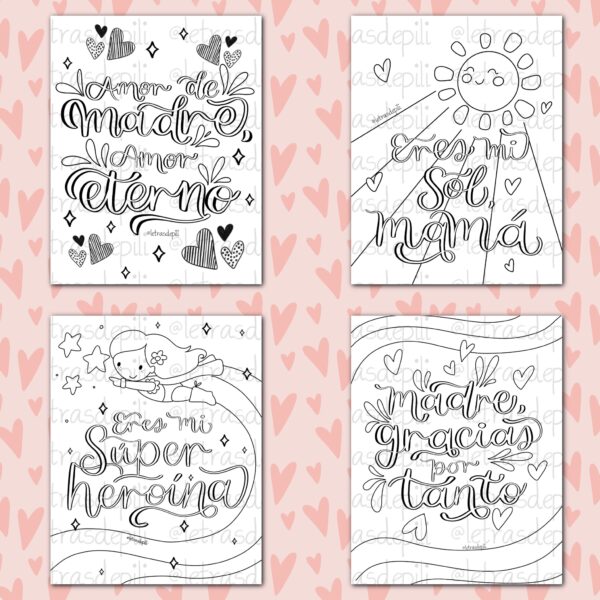 - Cuadernillo con 4 láminas para colorear del Día de la madre