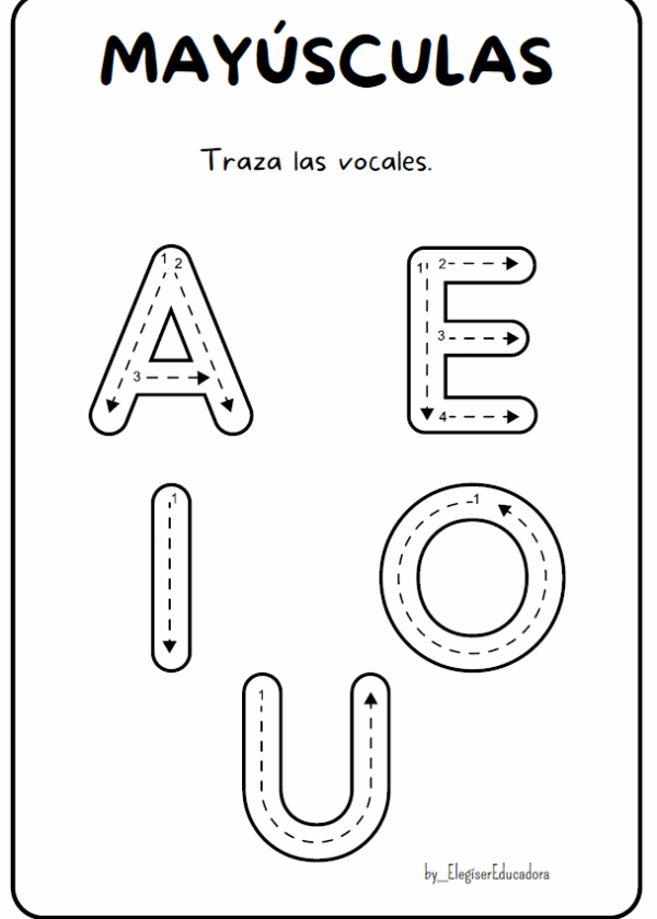 Contenido: El recurso cubre las cinco vocales en sus formatos mayúsculas y minúsculas.