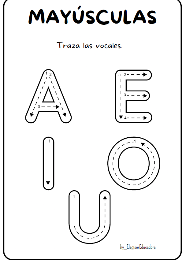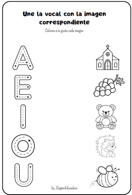 Propósito: Es una herramienta multifuncional que desarrolla la grafomotricidad específica de las vocales y fortalece el reconocimiento de letras y la conciencia fonológica al conectar la vocal con una palabra.