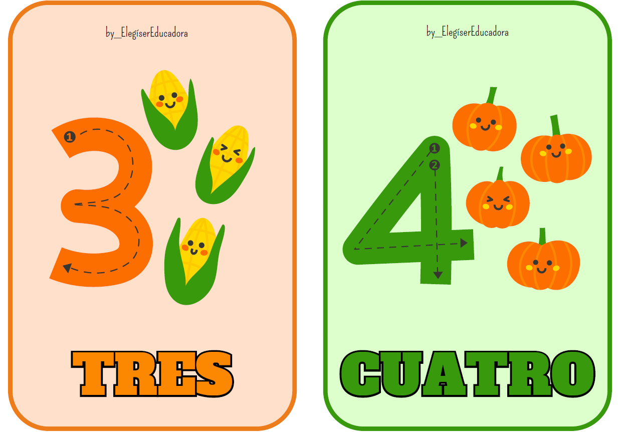 TARJETAS EDUCATIVAS NUMERICAS CON FRUTAS Y VERDURAS