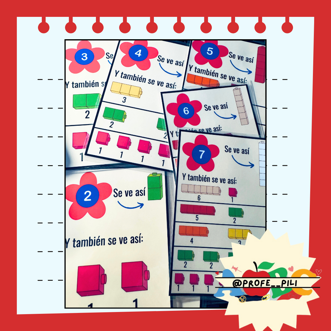 Recurso educativo diseñado para facilitar la enseñanza de la descomposición numérica en los primeros años escolares. Este conjunto de tarjetas imprimibles y plastificables representa los números del 1 al 10 mediante bloques visuales, similares a los utilizados en el aula.