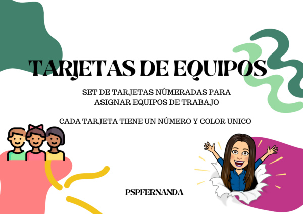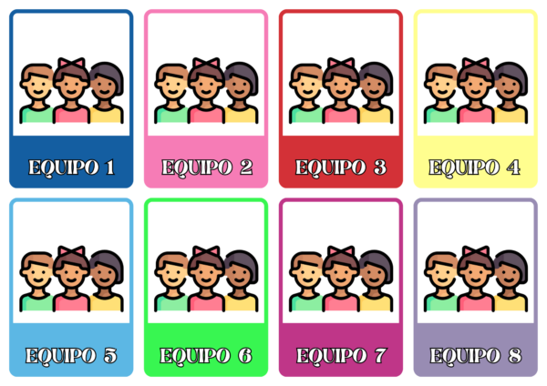 tarjetas de identificación para equipos de trabajo en aula, cada tarjeta viene con un número y color identificatorio y único. tarjetas hasta 12 equipos .