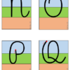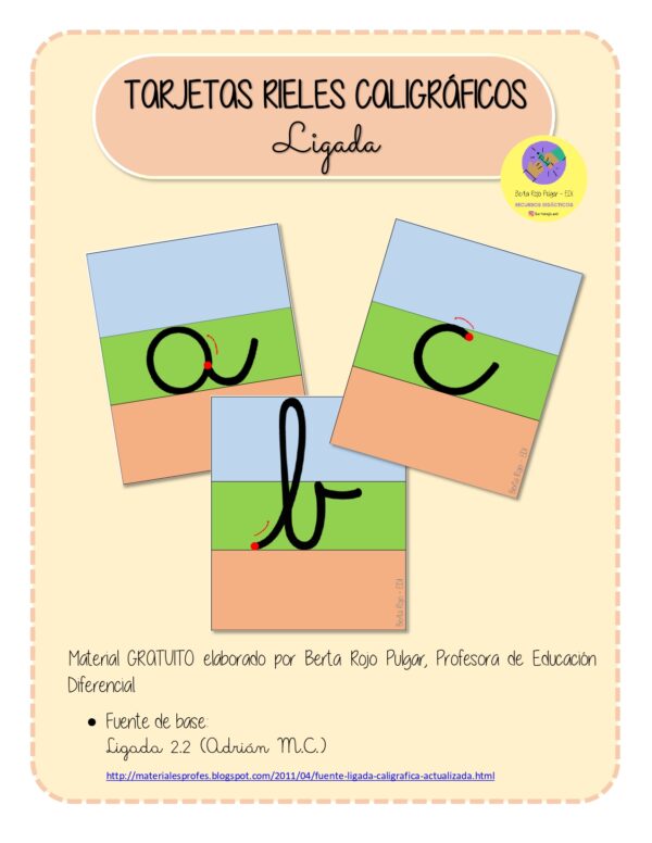 Tarjetas con rieles caligráficos para aprender y repasar el trazo de cada letra (ligada). El material ayuda a comprender el espacio que ocupa cada grafema y practicar su escritura. Puede ser impreso y termolaminado para usarlo y reutilizarlo con un plumón borrable.