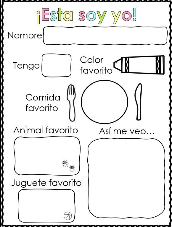 This is me! o Est@ soy yo! es un actividad ampliamente conocida para conocer a tus estudiantes y sus favoritos en el primer día de clase. Es una actividad efectiva para comenzar a crear comunidad con estudiantes de todos los cursos y niveles.
