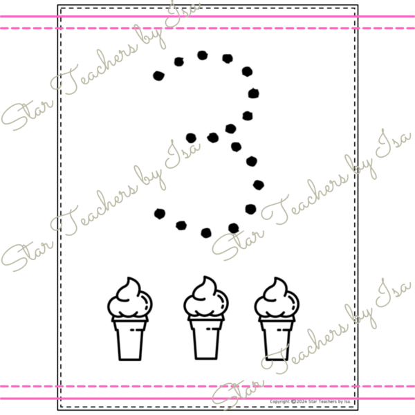 Hay “helados” en cada página, así los niños pueden contar cuántos forman el número indicado, puedes encontrar un tip de como desarrollar más habilidades adentro del producto. Puedes usarlo de tantas formar como te imagines.
