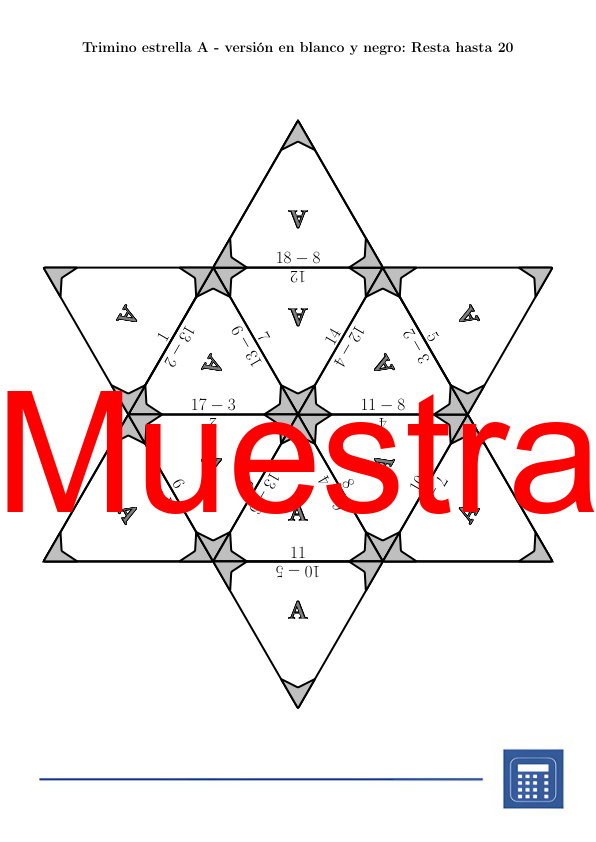 Imprime las páginas en formato A4 o A3. Cada estudiante o grupo recibe una hoja con un tipo de Trimino para recortar, barajar y luego ensamblar en forma de estrella o triángulo. La cantidad de conjuntos disponibles te permite: