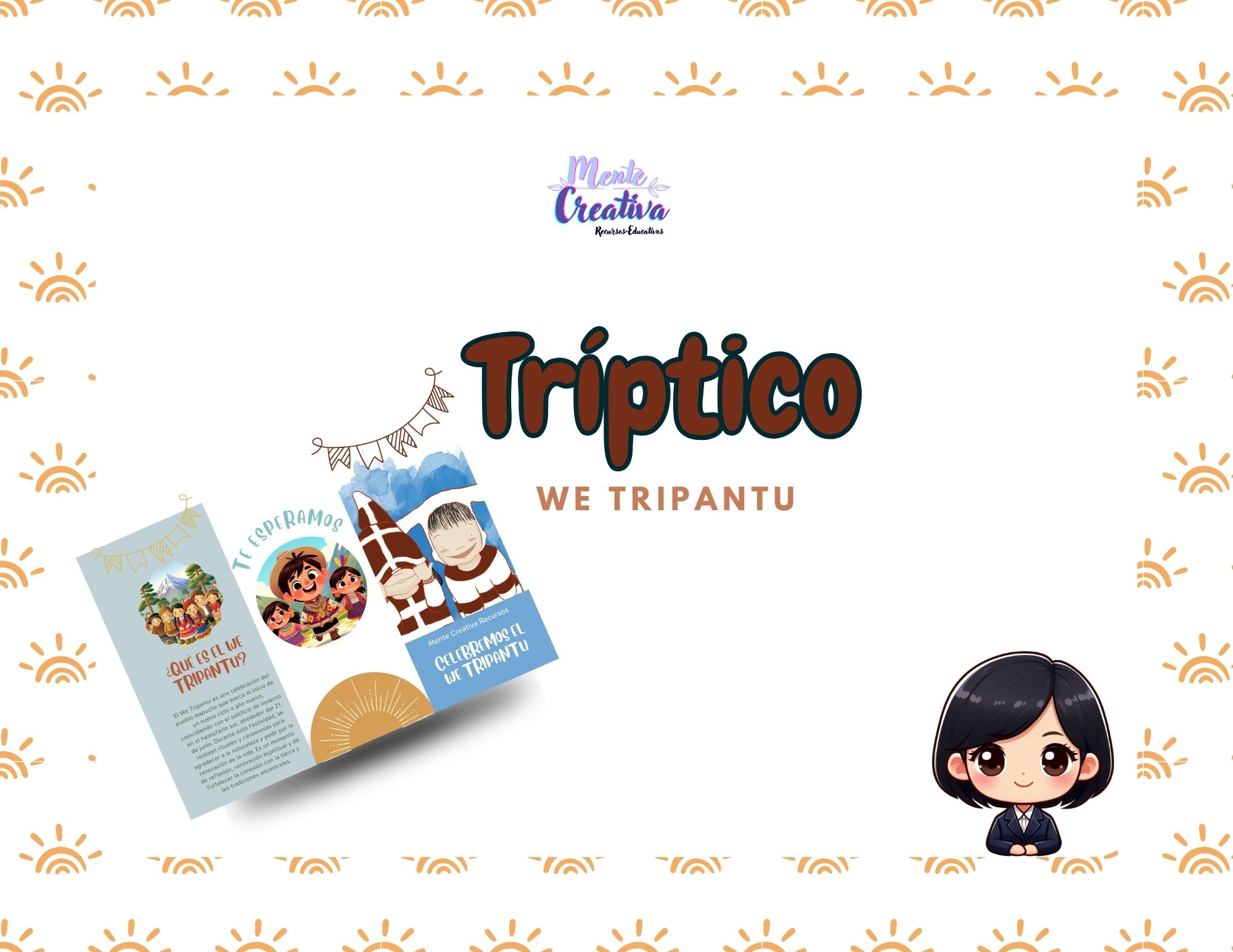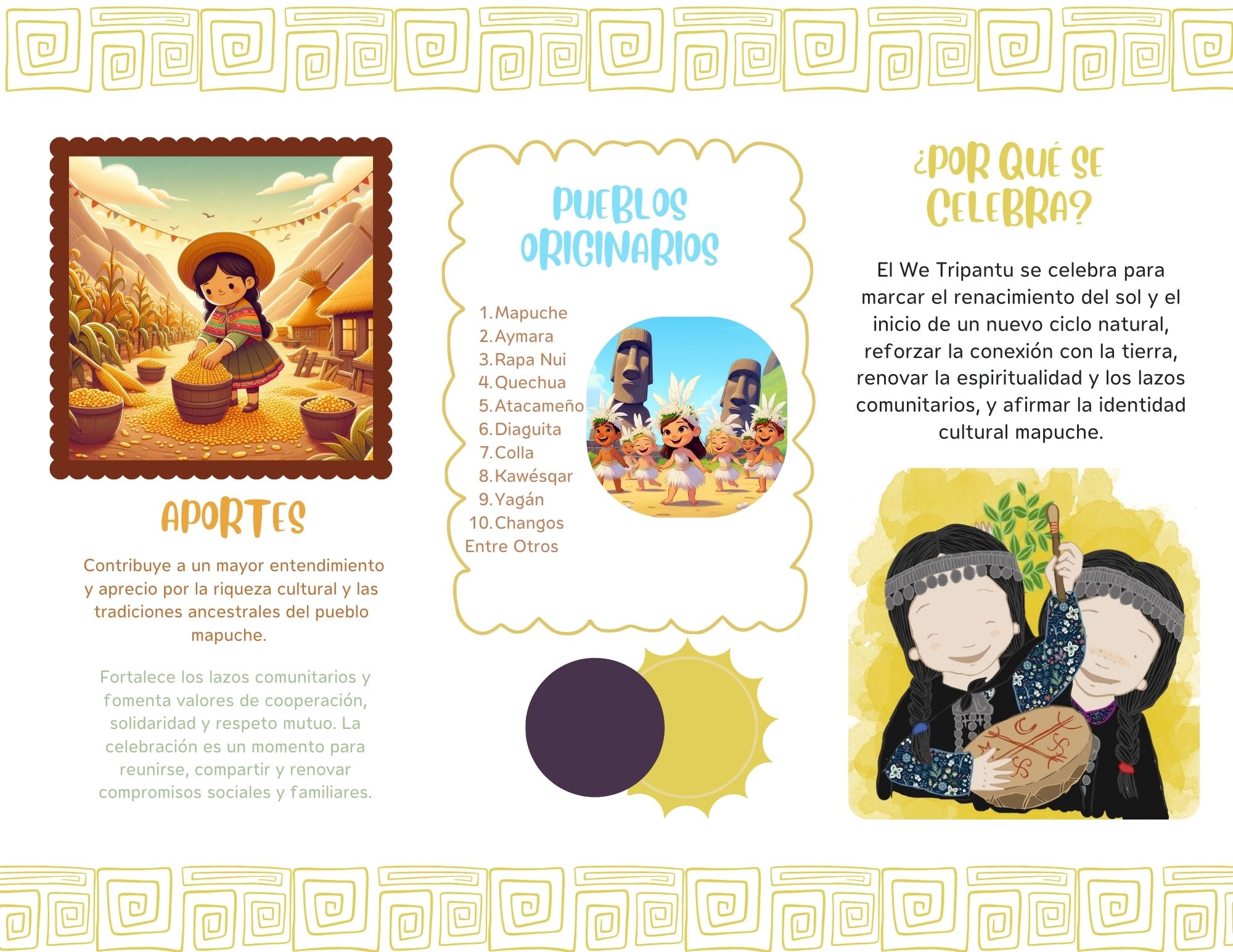 Tríptico de la Celebración de We Tripantu, para entregar como recuerdos a nuestros estudiantes o invitados. Contiene: