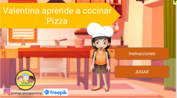 Este material interactivo consta de tres niveles de juego de preparación de Pizza en donde una niña interactúa con los participantes con el fin de que escojan las herramientas y alimentos necesarios para elaborar Pizza, y conseguir llevar a cabo todos los pasos de las recetas. También cuenta con diapositiva de exploración de alimentos principales utilizados en la preparación de una pizza.