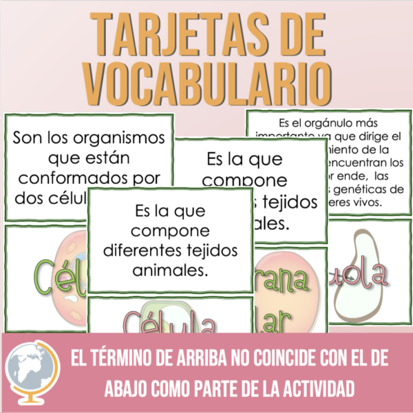 vocabulario clave antes de una prueba sobre la célula. Los estudiantes