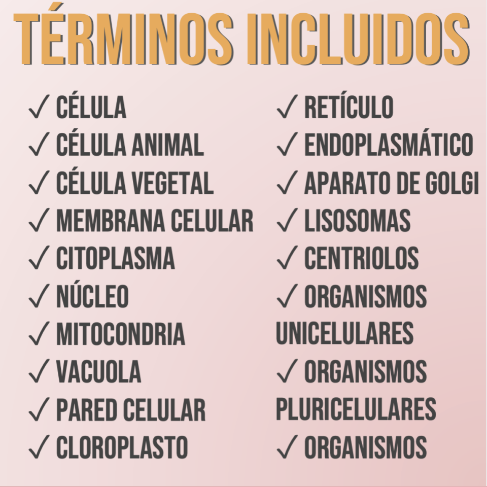 vocabulario clave antes de una prueba sobre la célula. Los estudiantes
