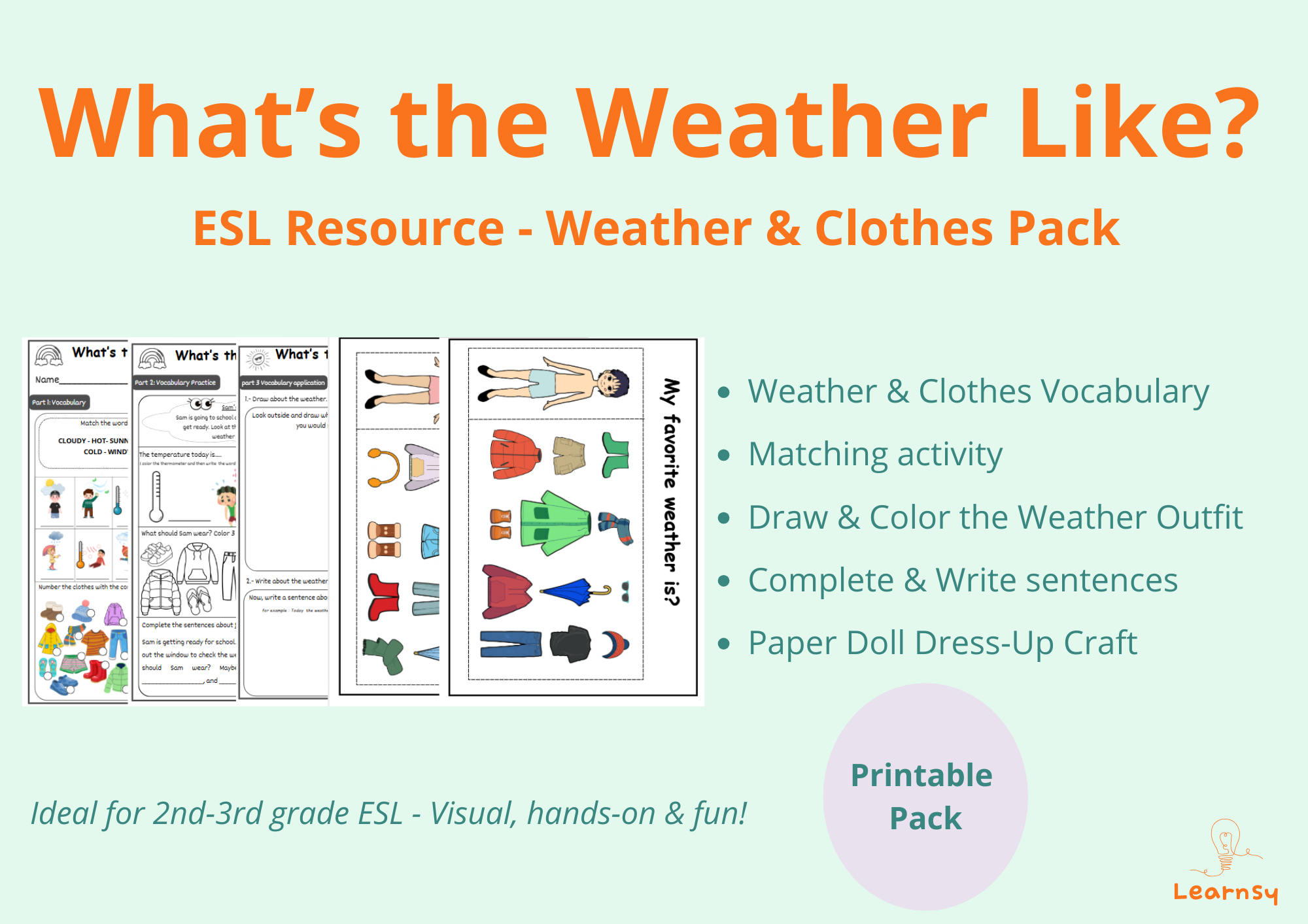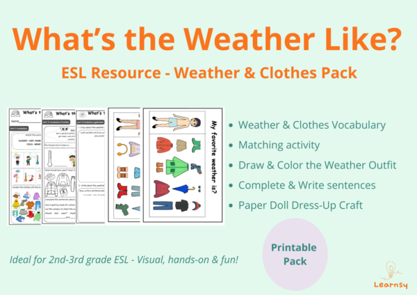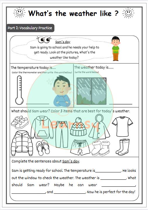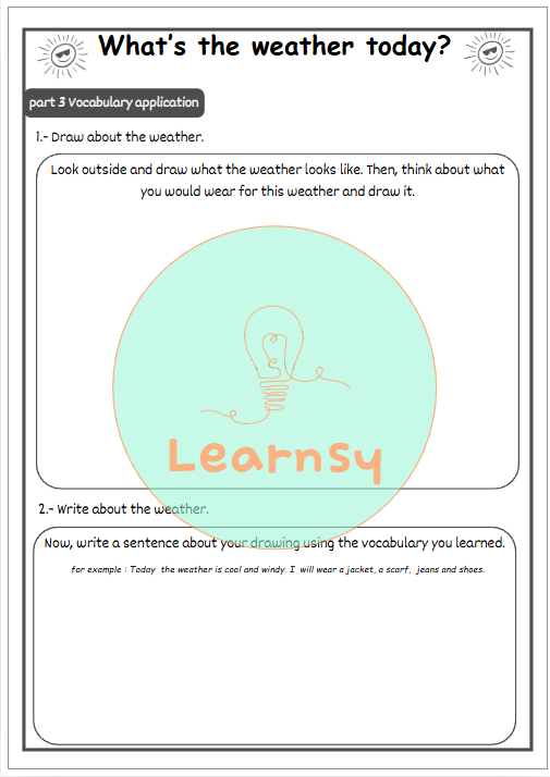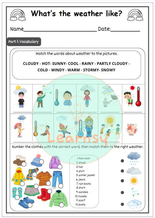 Esta guía está diseñada para estudiantes de enseñanza básica que están comenzando a aprender vocabulario relacionado con el clima en inglés.