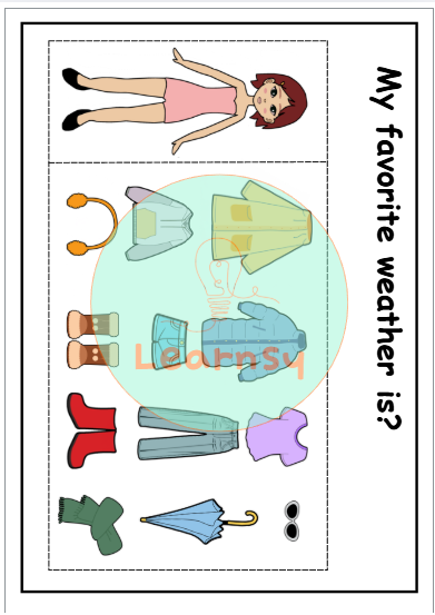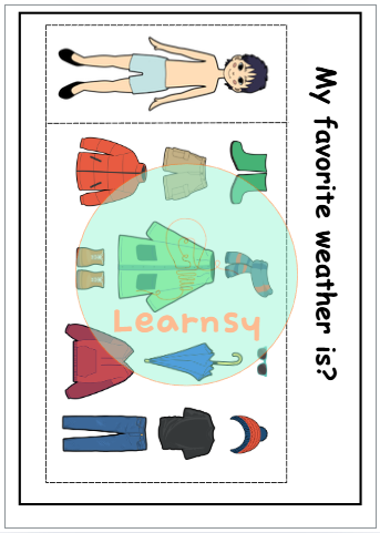 - Muñecos recortables con ropa para combinar según el clima, tipo paper dolls.