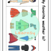 - Vocabulario visual sobre tipos de clima y ropa.